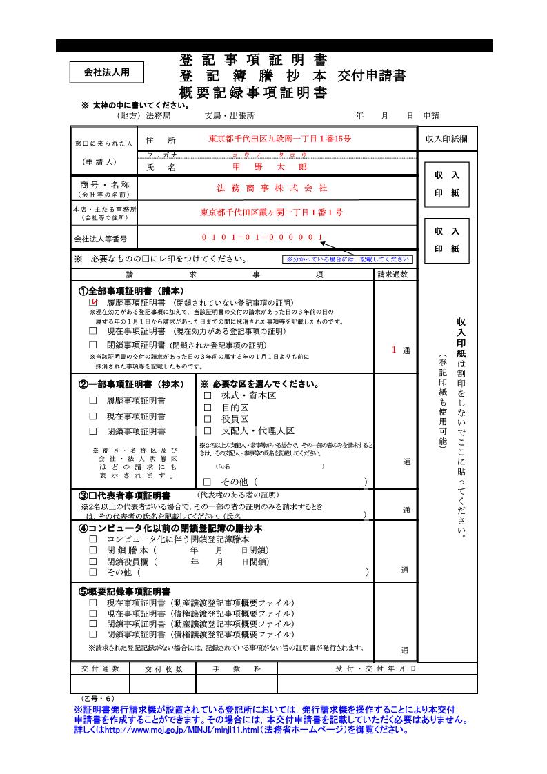 • 閉鎖事項全部証明書を取得する場合は、すべての閉鎖事項を含むため、特定の情報のみを取得したい場合は「閉鎖事項証明書」との違いを理解した上で申請してください。交付申請書の欄をよく確認して請求しましょう。