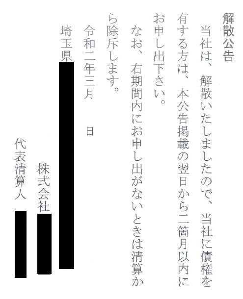 つまり、「これから会社を解散しますので、債権者の方は申し出てください」という趣旨です。
